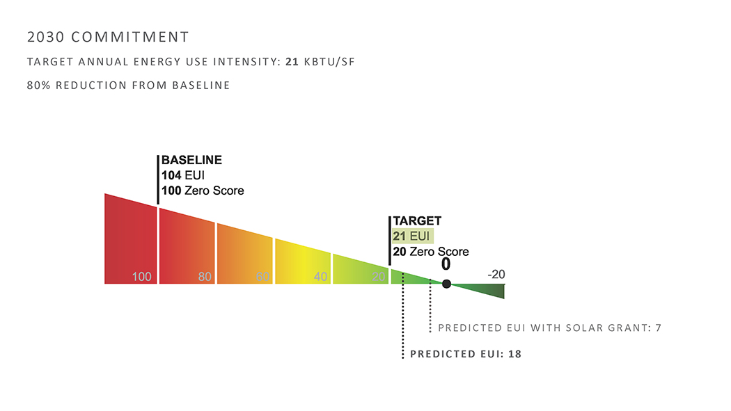 • An innovative solar array and backup battery system that will allow the building to continue to be used in power outages and other emergencies.